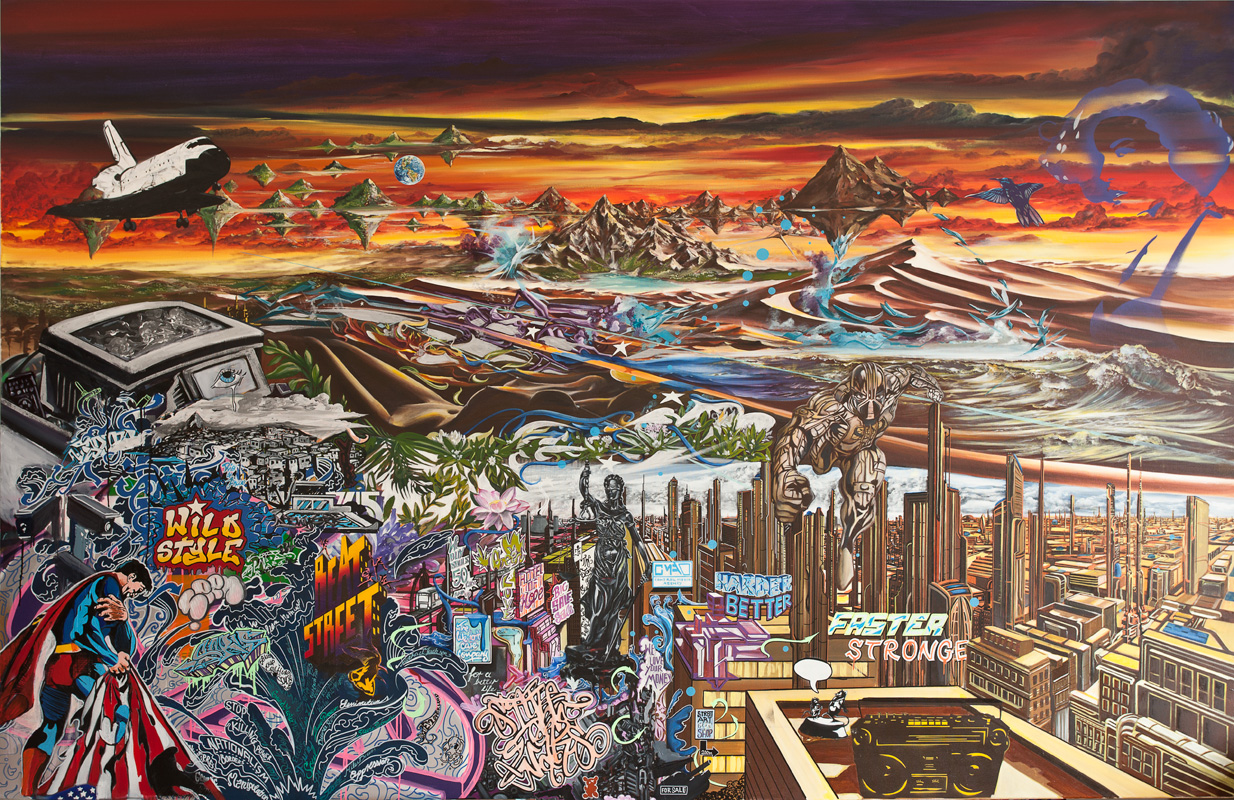 Jadore Tong was born in 1970 in Weimar and grew up in Paris and Berlin. His first graffiti art was made in 1987 in the streets of Berlin as well as on canvas. His artworks connect painting with street art techniques. Sometimes he realizes his ideas in a bold and minimalistic way and sometimes in a more impressionistic and dreamy way. Working under the pseudonym Syrus (Save Your Rich Untouchable Soul 2003), spontaneous projects like limited shirt designs, sculptures and installations emerge. He is always looking for a challenge and his works range from collages on canvas to tape art installations and 3D art objects to mural artworks in Berlin’s Kreuzberg district.