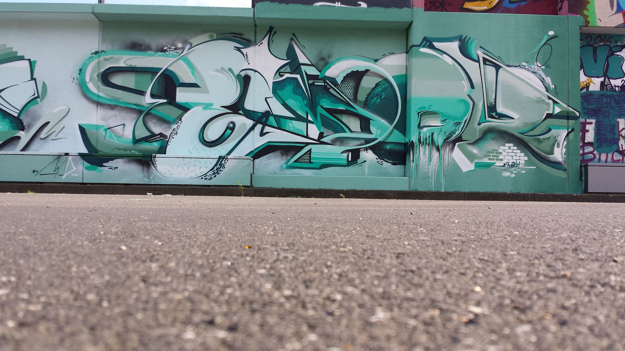 “Semor” lives and works in Cologne. His passion for style writing began in 1993 and was so strong that he could not stop it. Nowadays his style differs from classic graffiti. His artworks are extensive, graphical, spirited and also contain abstract forms and colorations.