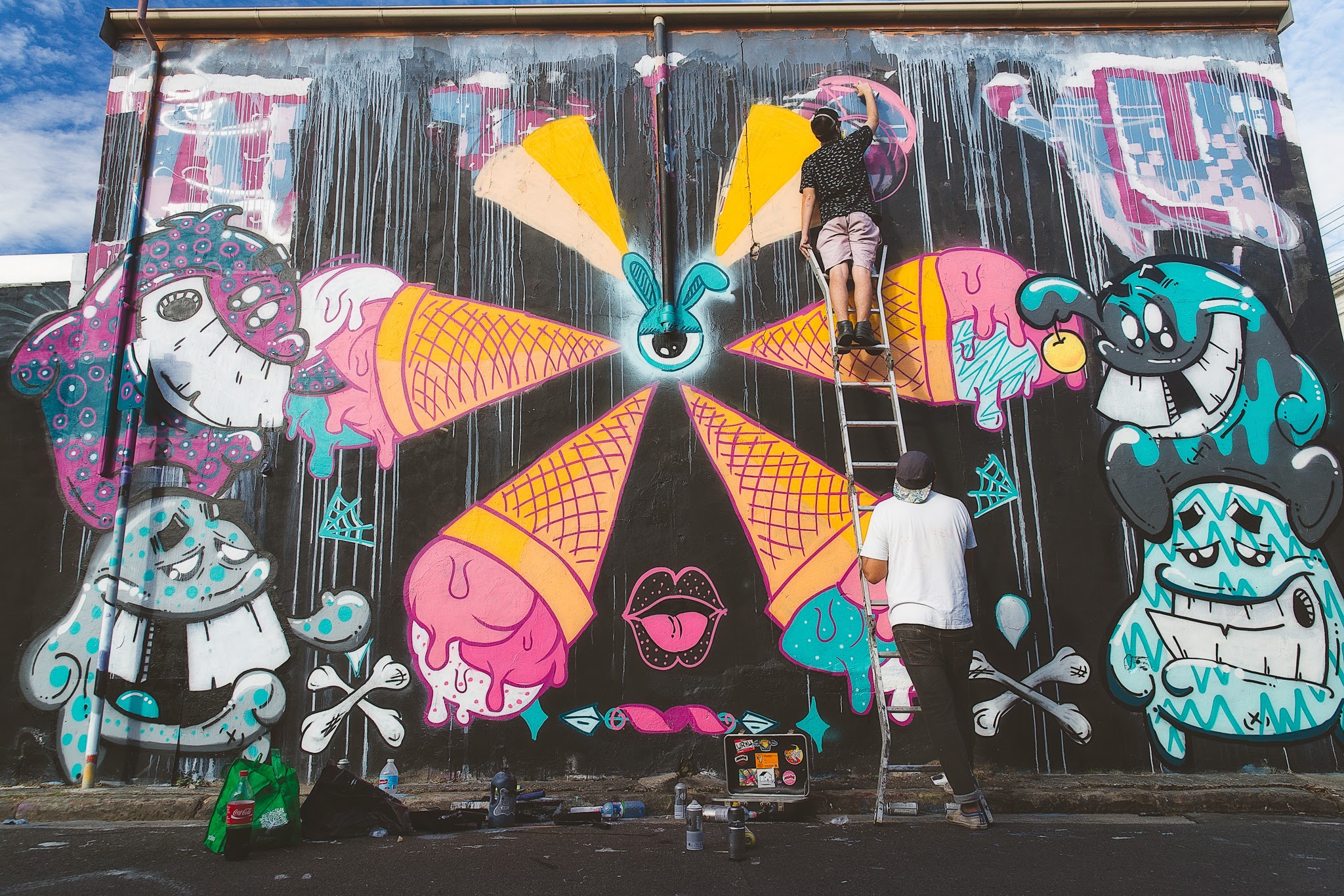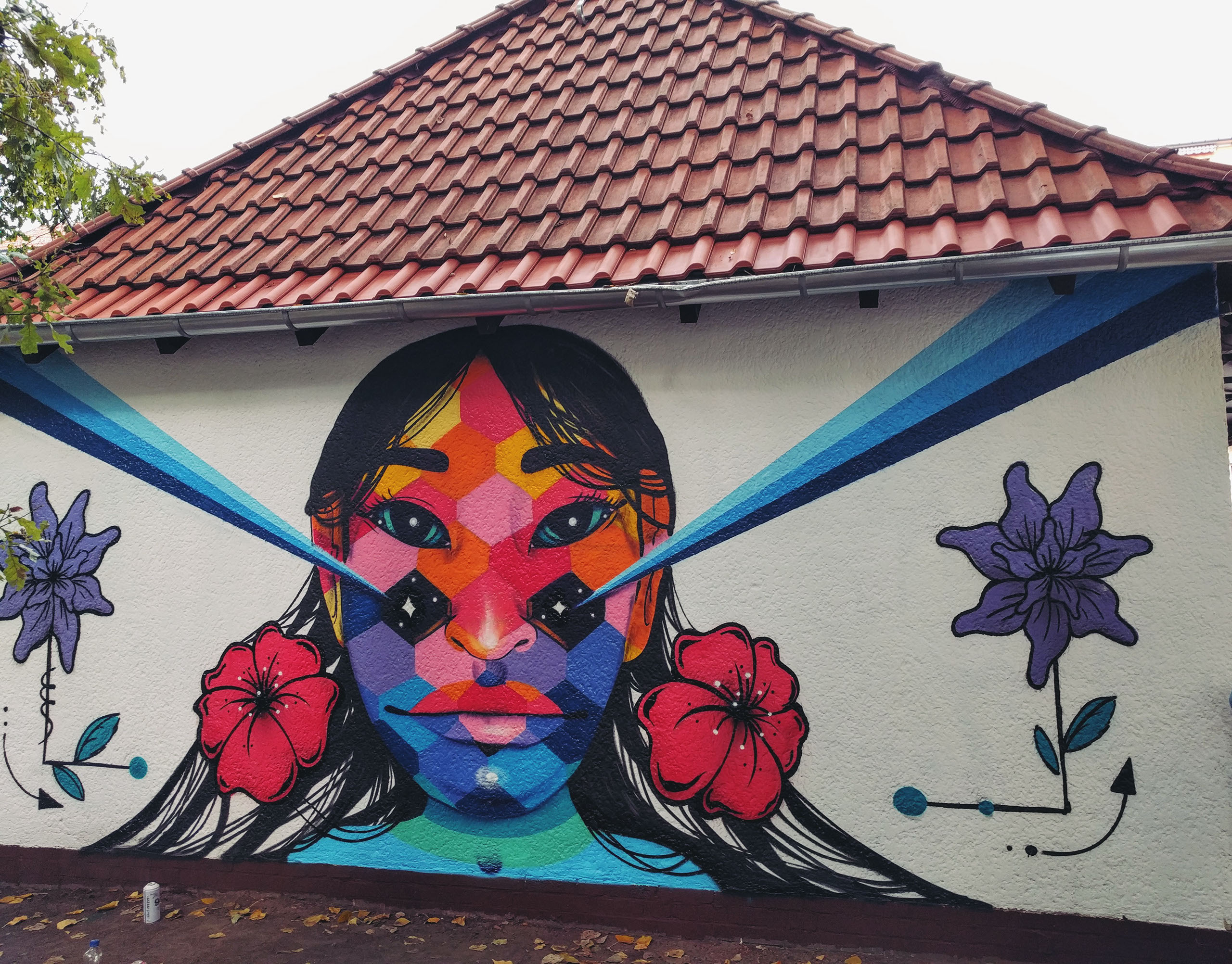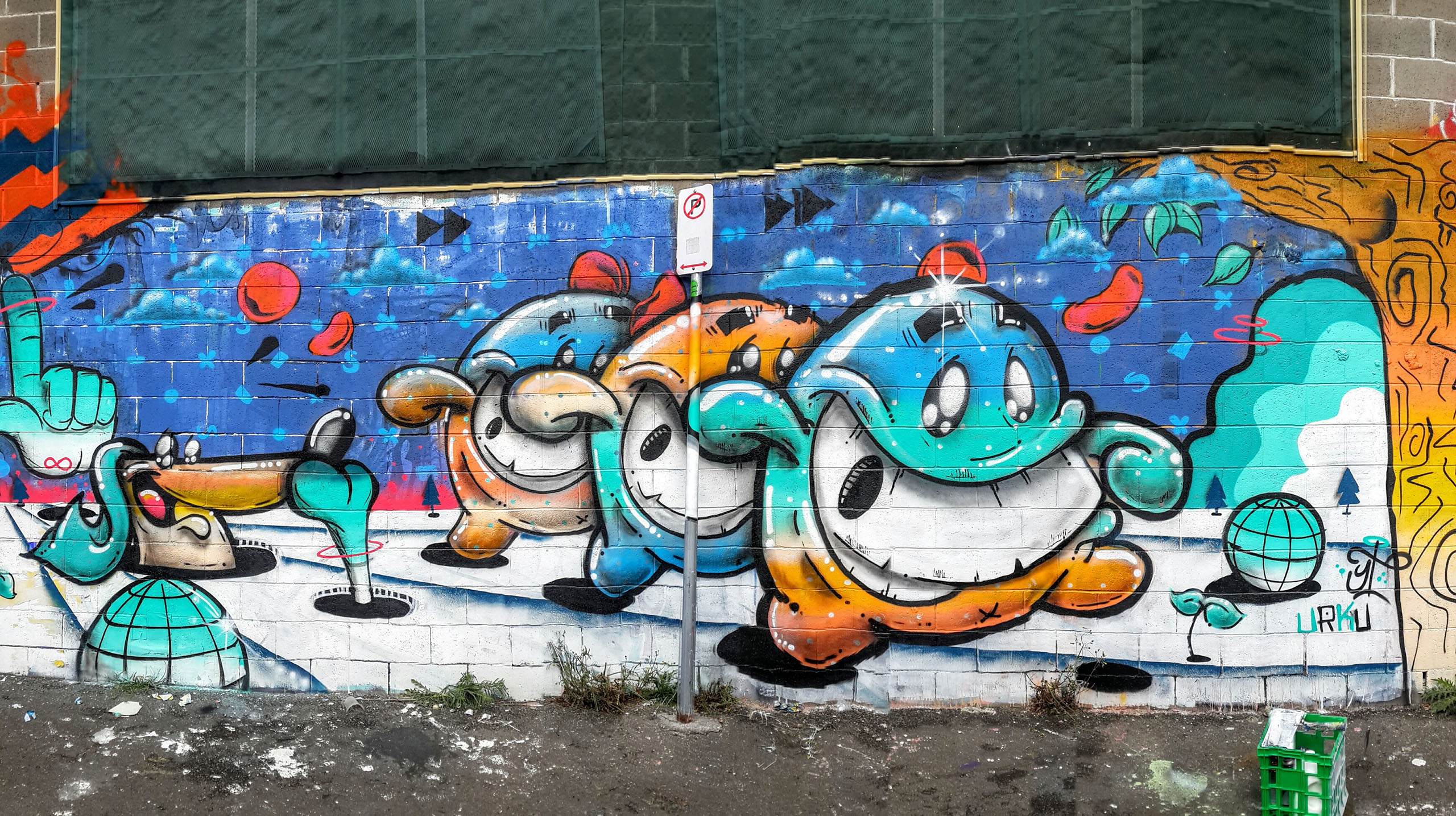 Urku was born and raised in Quito, Ecuador, spent 4 years in Australia, and is currently based in Berlin. He started with stencils and tags in the streets of Quito when he was 16. At the age of 21 he started involving himself much more in graffiti and painting in the streets. His murals and paintings can be described best as an explosion of color, humor and balance. After living in Quito, Brisbane, Sydney and Berlin, his work aims to create the idea of a multicultural mix that promotes a happy equality.