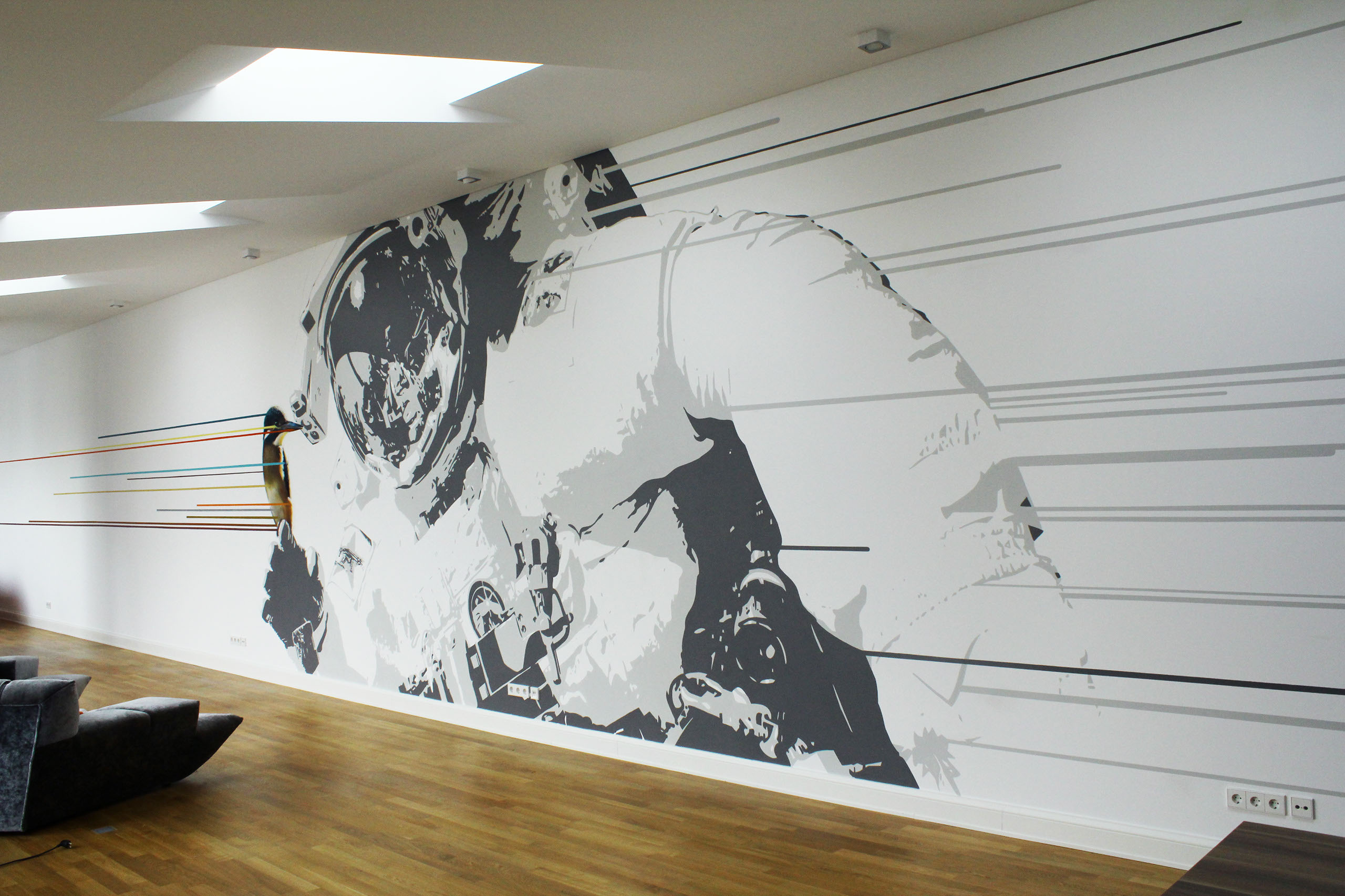 Innerfields are the three artists Jakob Tory Bardou, Holger Weißflog and Veit Tempich. All three were born in Berlin and are now also based there. They grew up with graffiti and various other influences and formed as a group in 1998. The artists like to reflect their environment and create mostly figurative motifs in a realistic style that are mixed with graphic elements and symbols. The human being, bound to being part of nature (and all too often opposed to it), is a major topic in their body of work. They create works of art as a profession and love taking part in festivals and various art-related projects around the world.