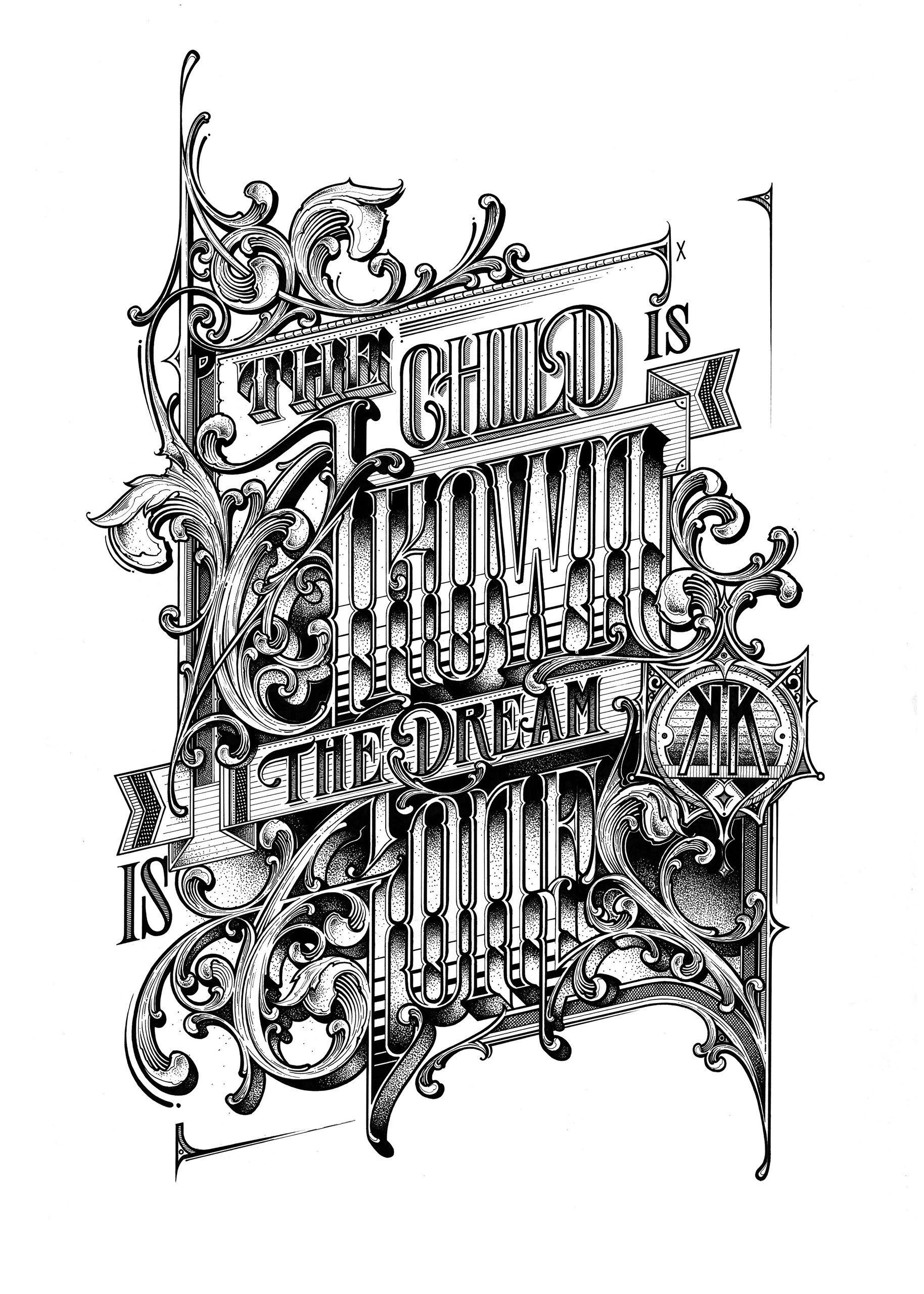 KKADE lives and works in Bern, Switzerland. He focuses on typography. It does not matter whether this is fine liner drawings, mural paintings or graphic design, he does not know any borders in design and realization and is open for individual projects and new ideas. He is part of the collective Schwarzmaler & The Seventh Letter. His style is shaped by art nouveau and baroque elements yet exists in the contemporary urban art context. This is what gives his artwork a unique character that is his very own.