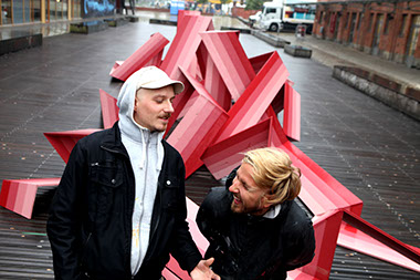 Quintessenz is an artist duo from Hannover and Berlin. Thomas Granseuer and Tomislav Topic met in 2006 at the HAWK Hildesheim and have worked together on projects in film, illustration and painting since 2008. The abstract works by Quintessenz are concerned with the environment of the field of emergence. They filter structures and compositions out of the room to translate them in an artistic way. The addition of color creates a contrast to the original environment. In this way, a subtle area of tension emerges, in which both artists can conduct further studies. Since the beginning of 2015, Quintessenz have worked as lecturers for exhibition design at HAWK Hildesheim. In 2014, Quintessenz was elected as one of the ten pioneering creative studios by the New Yorker stock photo agency. Important exhibitions have included Alt Stralau 4 in Berlin, “Knotenpunkt” exhibition in Hamburg, “Analog Mensch Digital” exhibition in Berlin, “WandWand” exhibition in Rosenheim and their solo exhibition “The Part Of Me” in Hannover.