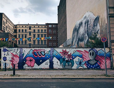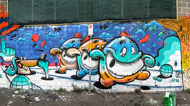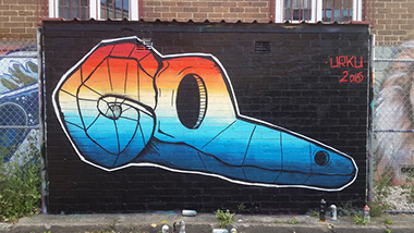 Urku was born and raised in Quito, Ecuador, spent 4 years in Australia, and is currently based in Berlin. He started with stencils and tags in the streets of Quito when he was 16. At the age of 21 he started involving himself much more in graffiti and painting in the streets. His murals and paintings can be described best as an explosion of color, humor and balance. After living in Quito, Brisbane, Sydney and Berlin, his work aims to create the idea of a multicultural mix that promotes a happy equality.