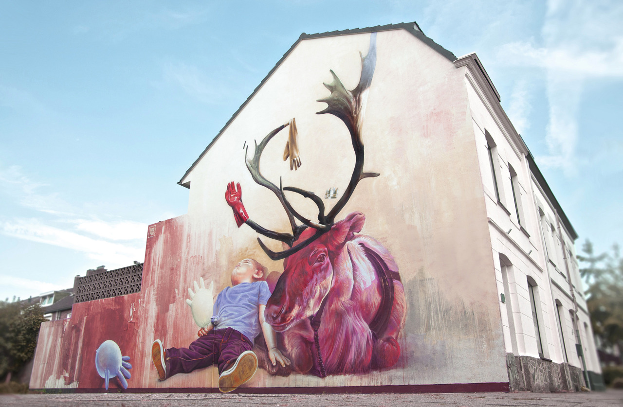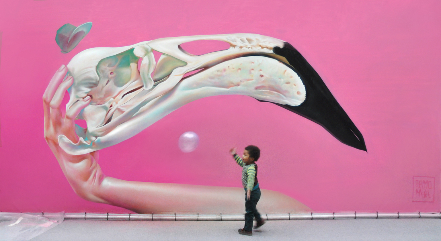 The result is usually very surrealistic, with a keen eye for the technicality of realism. They work on the same mural pieces together and are able to switch places whenever they want or need to. Their studio work contains individual and collaborative pieces, but they all carry the name TelmoMiel.